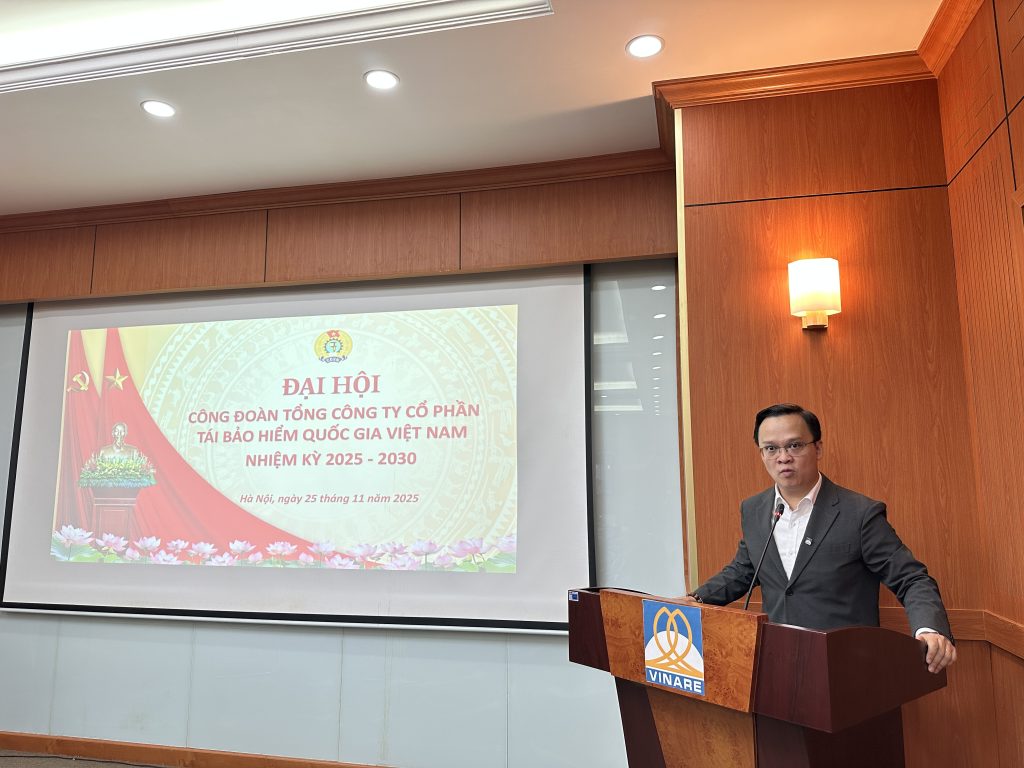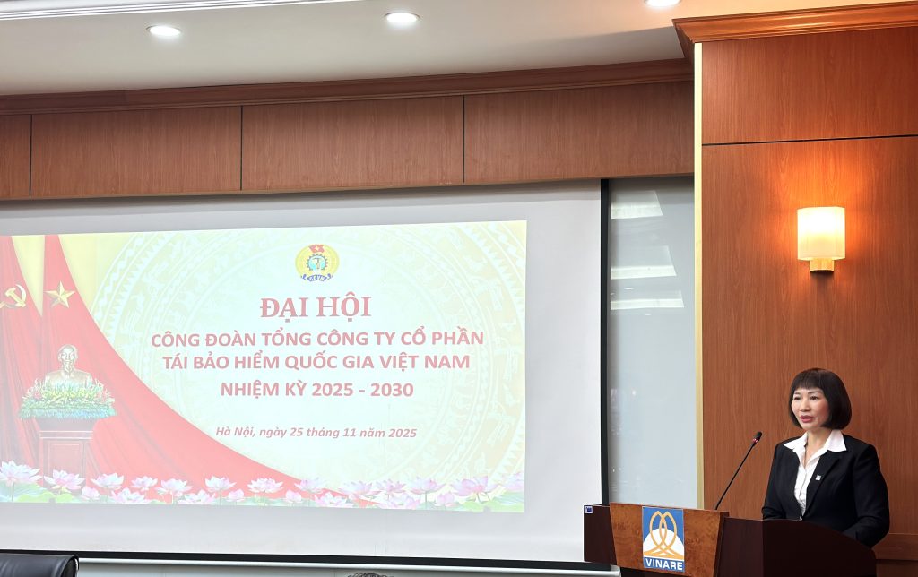 Sáng ngày 25/11, Công đoàn Tổng công ty cổ phần Tái bảo hiểm Quốc gia Việt Nam (VINARE) long trọng tổ chức Đại hội Công đoàn nhiệm kỳ 2025–2030. Tham dự Đại hội có đồng chí Nguyễn Anh Tuấn – Bí thư Đảng ủy, Chủ tịch Hội đồng Quản trị; đồng chí Mai Xuân Dũng – Tổng Giám đốc; đồng chí Nguyễn Thị Quỳnh Hường – Thành viên Hội đồng Quản trị; đồng chí Phạm Phan Dũng – Thành viên độc lập Hội đồng Quản trị; đồng chí Vũ Ngọc Vượng – Trưởng Ban Kiểm soát; các đồng chí Phó Tổng Giám đốc cùng toàn thể đoàn viên Công đoàn VINARE.