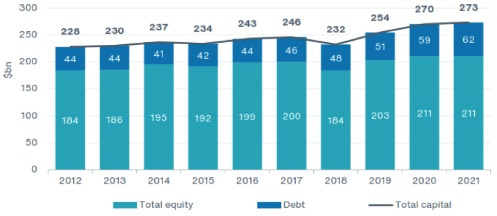 • Tổng nguồn vốn tăng 1% lên 273 tỷ USD, trong đó vốn chủ sở hữu là 211 tỷ USD (cố định) và nợ phải trả là 62 tỷ USD (+ 6%). Mức độ an toàn về vốn vẫn tốt theo các mô hình vốn của cơ quan quản lý và xếp hạng tín nhiệm.