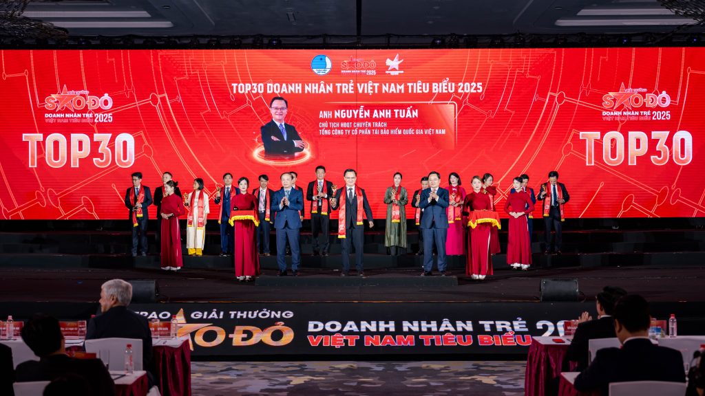 Tại buổi lễ, ông Nguyễn Anh Tuấn – Chủ tịch Hội đồng quản trị Tổng công ty cổ phần Tái bảo hiểm Quốc gia Việt Nam (VINARE) – vinh dự nằm trong TOP 30 Doanh nhân trẻ Việt Nam tiêu biểu 2025, thuộc Giải thưởng Sao Đỏ 2025 – giải thưởng ghi nhận những doanh nhân trẻ xuất sắc, bản lĩnh và có đóng góp nổi bật cho phát triển kinh tế – xã hội.