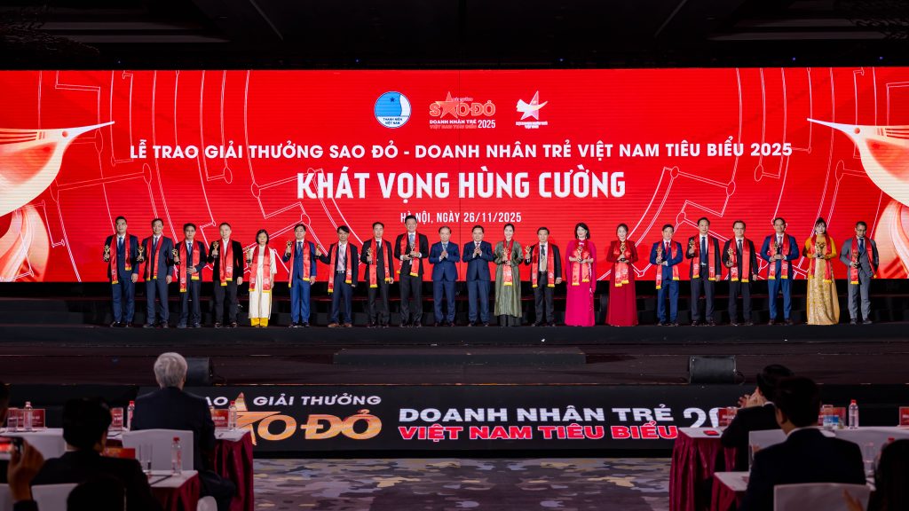 Tối 26/11/2025, tại Hà Nội, Lễ trao Giải thưởng Sao Đỏ – Doanh nhân trẻ Việt Nam tiêu biểu năm 2025 đã diễn ra. Sự kiện này không chỉ tôn vinh các gương mặt xuất sắc mà còn là hoạt động thiết thực chào mừng Đại hội Đại biểu toàn quốc Hội Doanh nhân trẻ Việt Nam lần thứ VIII, nhiệm kỳ 2025-2028.